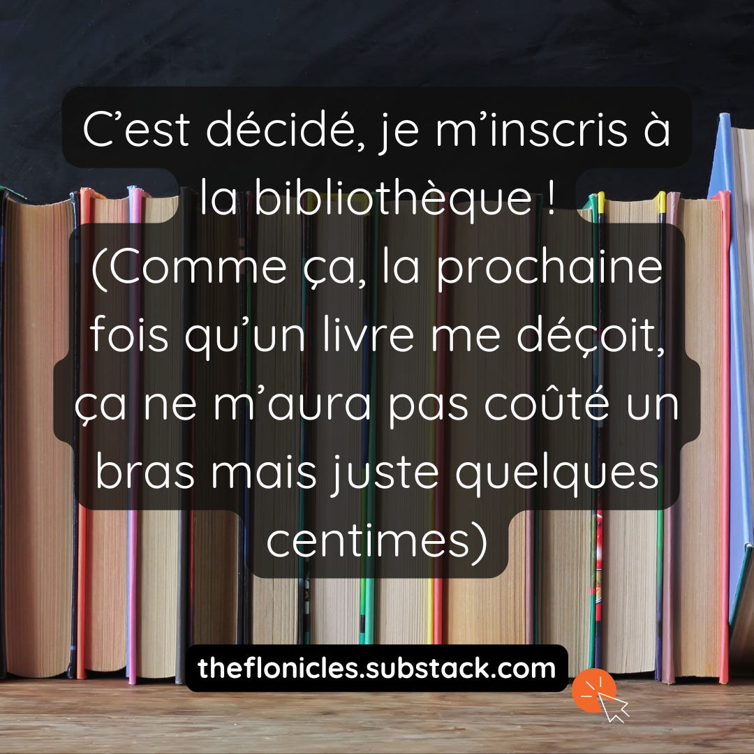 Pareil !! J’achetais trop de livres pour mon propre bien 🤣 la bibliothèque c’est cool, tu peux prendre plein de livres et si c’est nul pas besoin de te forcer à le finir
