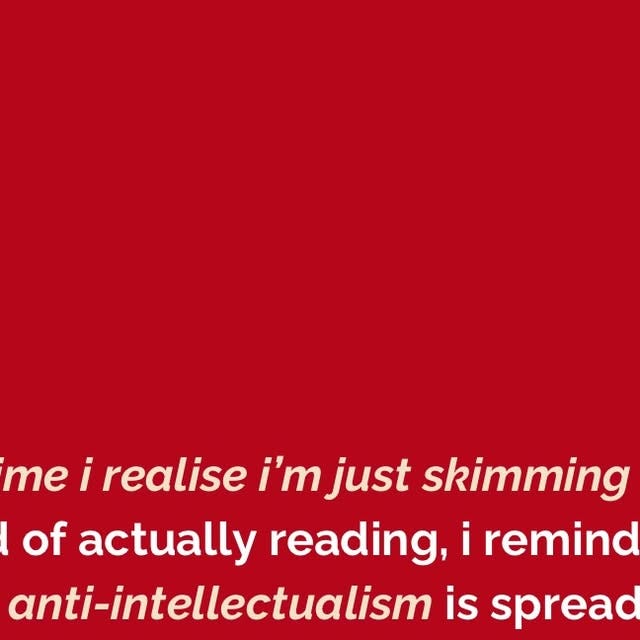 “(1) À chaque fois que je me surprends en train de balayer un livre plutôt que de lire, je me rappelle que l’anti-intellectualisme est en train de s’étendre rapidement. L’attention est un muscle. Si je ne l’utilise pas, il faiblit. Si je ne l’utilise pas, quelqu’un d’autre profite de sa faiblesse. Ralentir, c’est faire de la résistance. // (2) À chaque fois que je me surprends à vouloir un résumé de 10 secondes plutôt que de prendre le temps de la complexité, je me souviens que la simplification tue la nuance. Ce qui compte ne peut pas toujours être comprimé en un reel ou un tweet sans perdre sa consistance. // (4) À chaque fois que je rejette quelque chose parce que “c’est pas si profond que ça”, je vérifie si c’est justement la profondeur qui est évitée. L’anti-intellectualisme grandit en prétendant que la curiosité est prétentieuse et que la réflexion n’est pas nécessaire. // (5) À chaque fois que je choisis la vitesse plutôt que la compréhension, je me rappelle que la vitesse crée un certitude superficielle. La certitude sans effort est réconfortante, mais c’est aussi comme ça que la désinformation semble convaincante. // (6) À chaque fois que je vois l’apprentissage résumé à une “ambiance” ou une “énergie”, je me rappelle que se sentir informé n’est pas la même chose qu’être informé·e. La connaissance exige du travail. L’ambiance ne nécessite rien. // (8) (…) L’anti-intellectualisme ne débat pas. Il se moque et ridiculise. C’est comme ça qu’il s’étend sans résistance.”